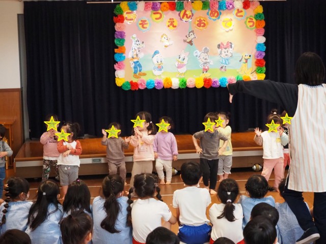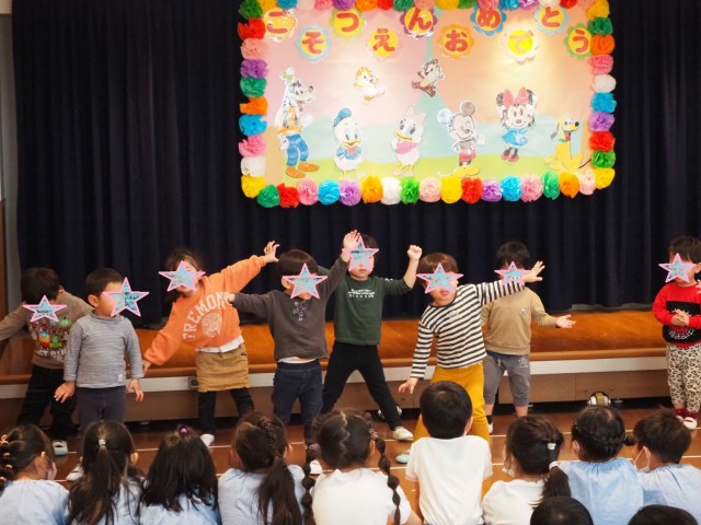 小さいクラスからお別れの言葉&歌の披露が有り、最後の方にはお別れするのが淋しくてウルウルの園児も居ました。