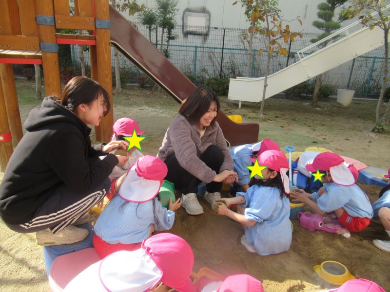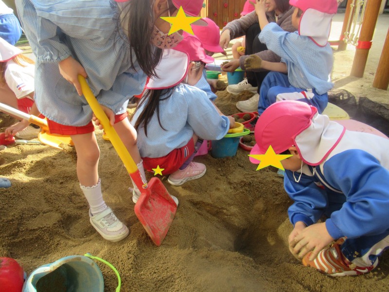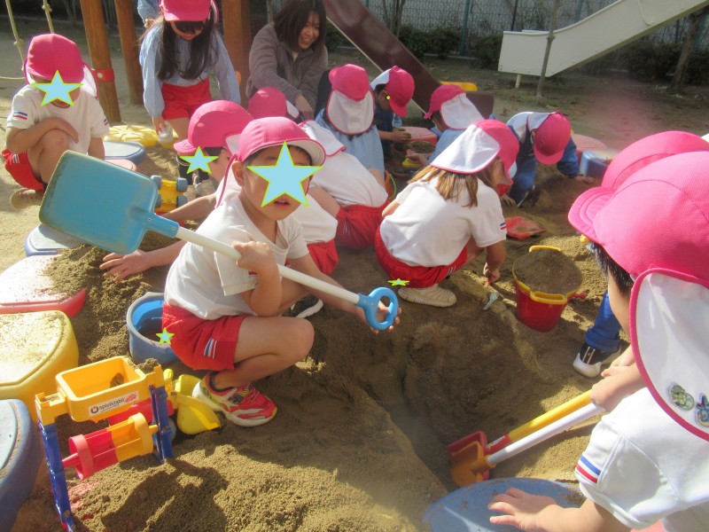 カトレア組さんも、ぽかぽか陽気だったのでお外でお砂場遊びをしました☆