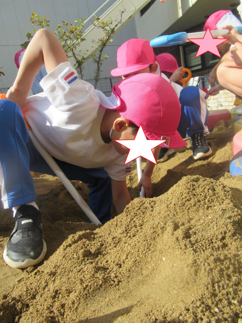 お友だちと協力して、すごーく深い穴をどこまで掘れるか試してみたり、
