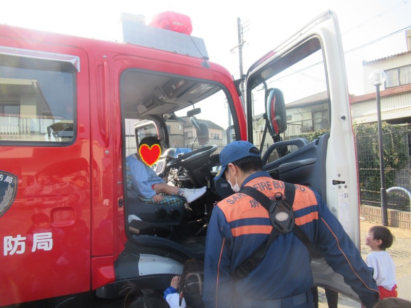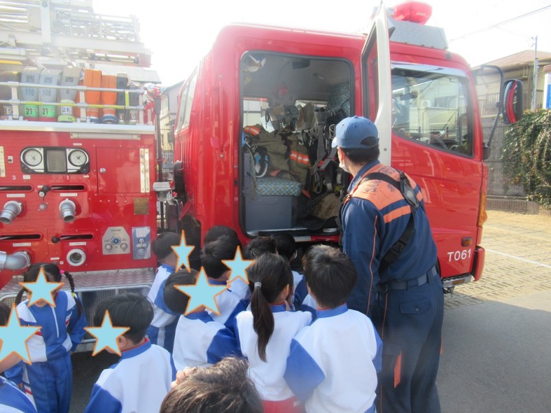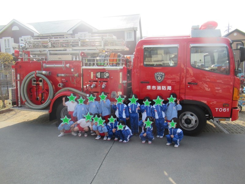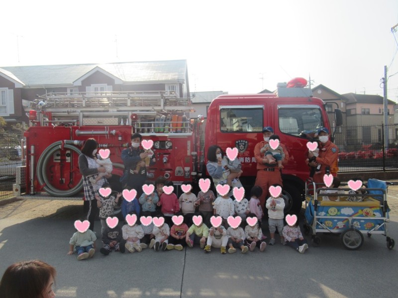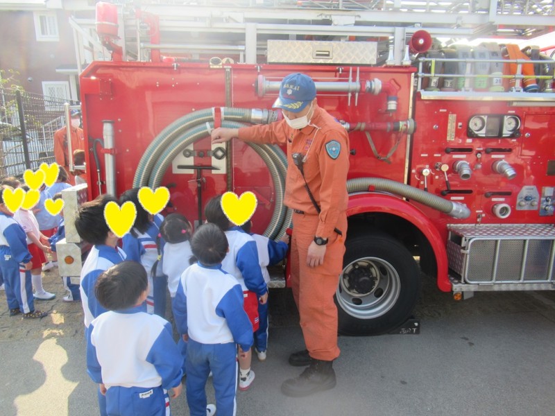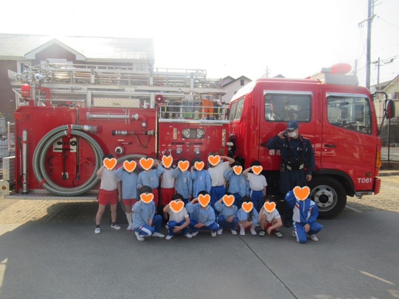 避難後は消防車と一緒に写真を撮らせてもらい、