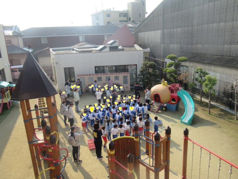 普段と違った警報の音に子どもたちもびっくりしていましたが、