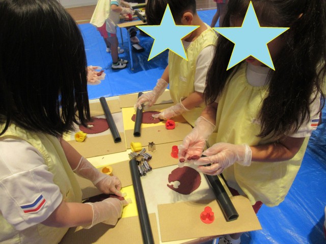 「粘土みたい~♪」とコロコロ転がしたり、かわいい形をたくさん作って