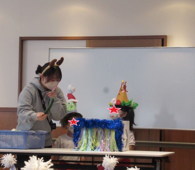 先生が絵本を読んでくれたり、BOXの物当てゲームをしたり、皆で一緒にジングルベルを歌ったり、とても楽しそうでした♬