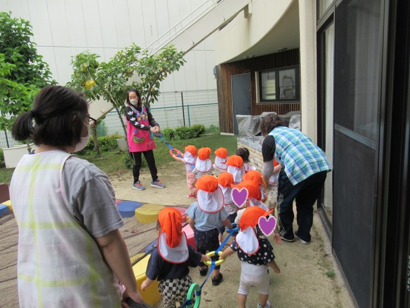 ポピー組の子どもたちは、お散歩リングを持ってお散歩に出掛ける練習をしたり、