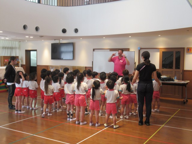 今日は英語教室がありました。最初に遊びとお歌を取り入れた自己紹介をして、イス取りゲームをしました。みんなとっても楽しそうでしたよ♡
