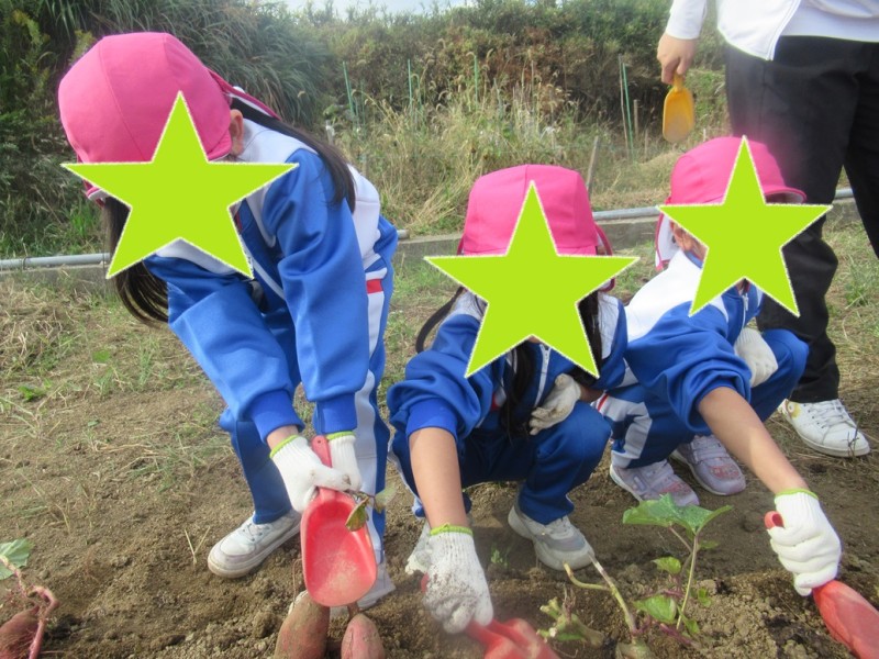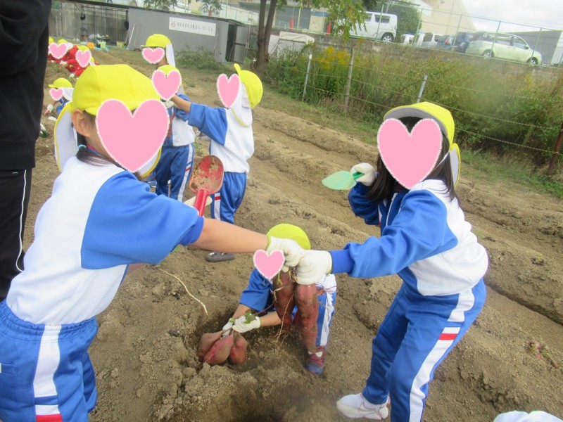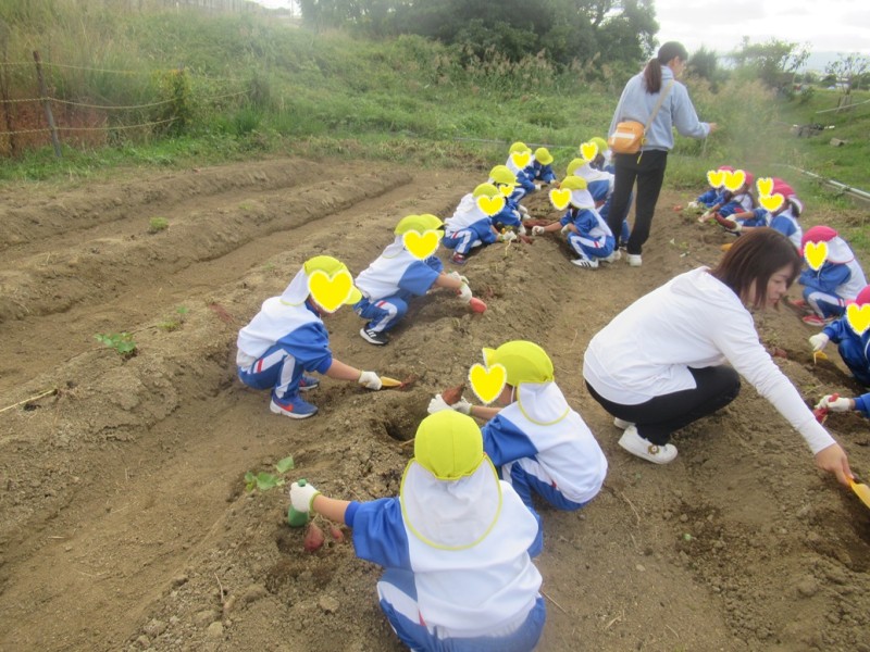 マーガレット組とカトレア組のお友だちでお芋掘りへ行きました♡