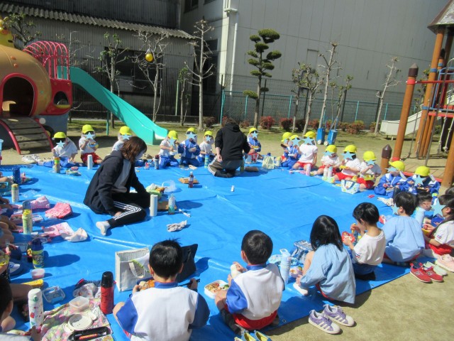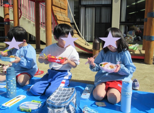 今日は5歳さんのお別れ遠足と、0~4歳さんのお弁当会でした!