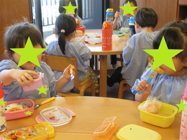 とっても嬉しそうで「見てみて~ママがおにぎりをニコニコにしてくれたよ!」「みんなで食べるとおいしい!!」という声がたくさん聞こえました♡