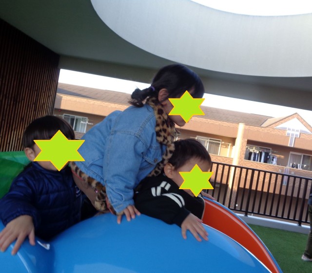 チューリップ組ではお部屋でジャンボブロックで遊んだり、お外遊びを楽しんでいますよ。