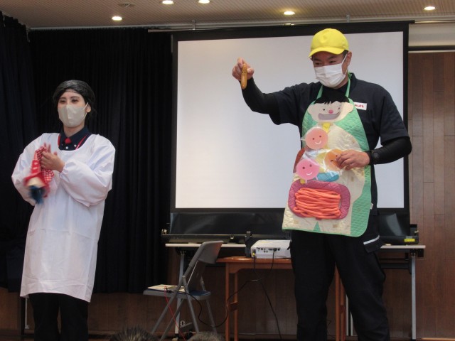 エプロンシアターやアニメの動画でおなかについての勉強をしました。