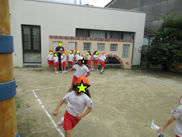 「虫をみつけたよ」とかお話をたくさんしてくれました。年長さんは、ドッジボールや鬼ごっこや、だるまさんがころんだ等をしてました☆