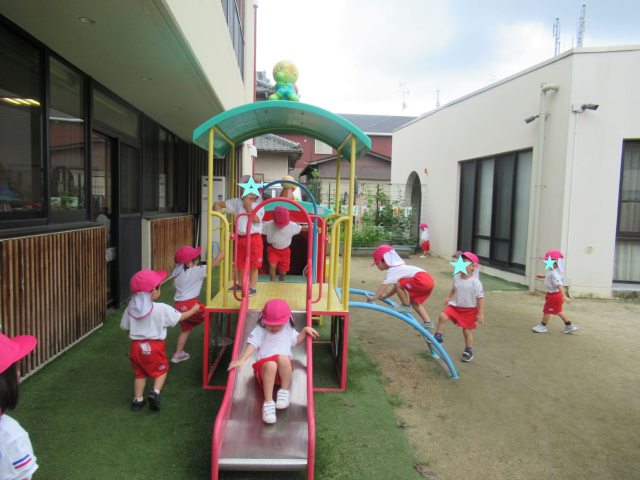 今日は園庭で遊ぶのに丁度いい天気でした!!みんなとても楽しそう♪