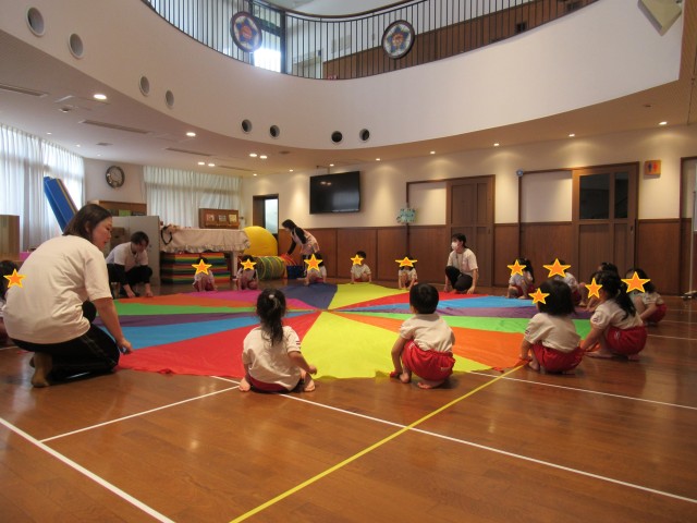 4~5歳児は合同運動会に向けてパラバルーンの練習を頑張っています☆