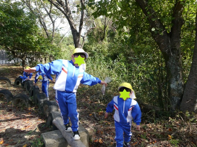 おいしいお弁当の後はみかん園内のアスレチックやドングリ拾いもしましたよ!