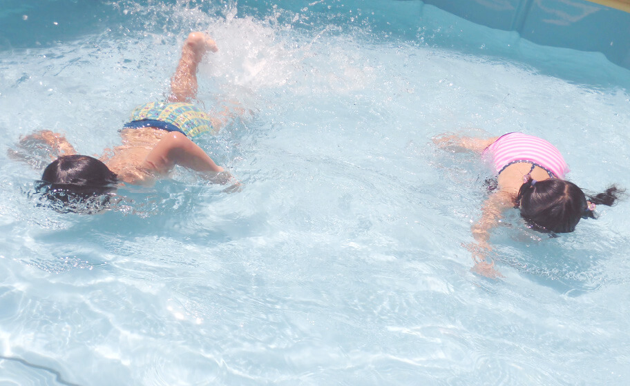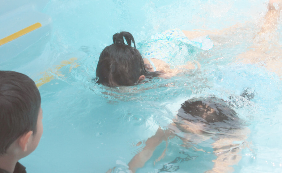 バタ足で泳ぐ練習や、顔を水につける練習などをします。