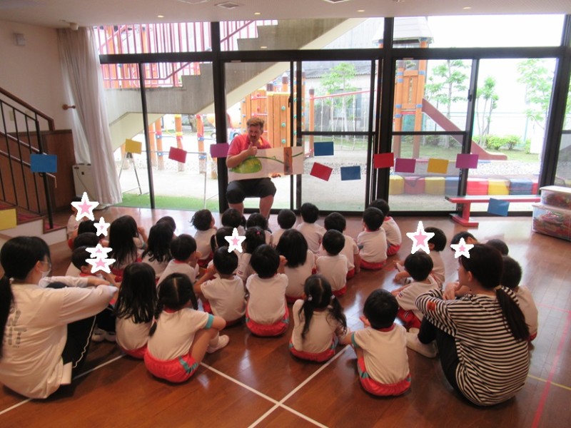 最後には絵本タイム。今日はみんな大好きな「はらぺこあおむし」の絵本でした!