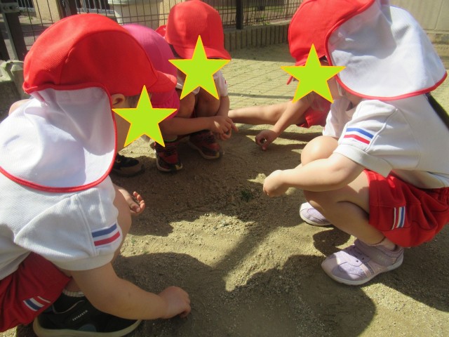 園庭ではアリさんを見つけてどこ行くんだろう?と観察したり
