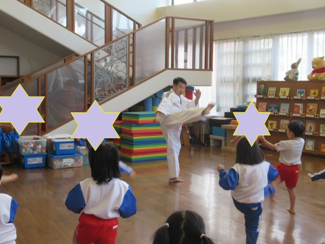 今日4歳児・5歳児は空手健康体操に参加しました♪