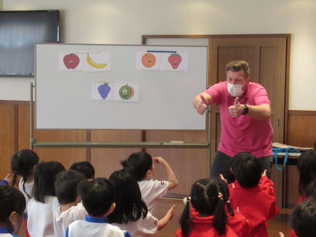 今日はフルーツのカードを使ったゲームで英語のお勉強をしましたよ☆