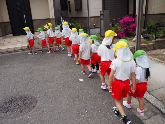 今日は3・4・5歳児クラスさんが近くの公園にお散歩に行きました。
