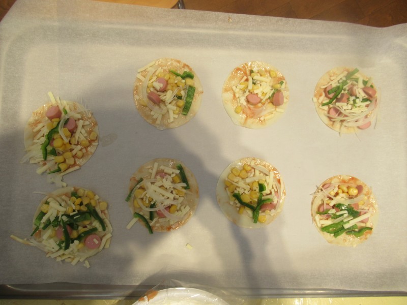 ピザをみんなで食べ、「ピーマン苦手だったけど