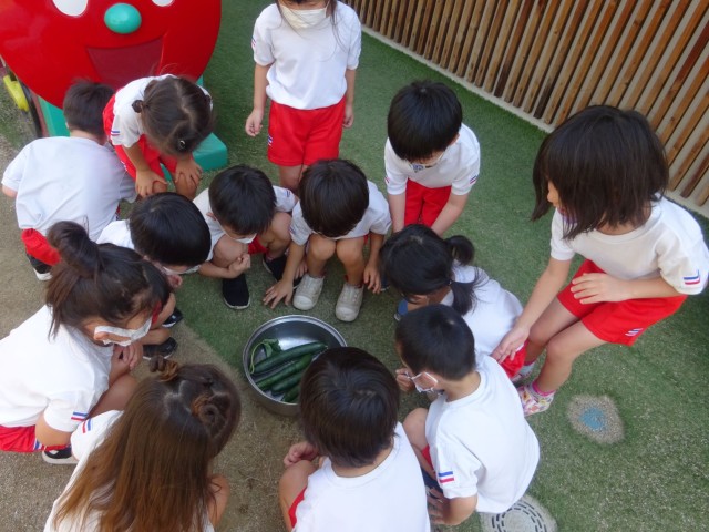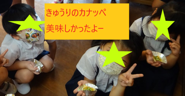 今日はなんと5本も収穫できて、給食室の先生にお願いしてカナッペのおやつになりました~(小さいクラスはサンドウィッチです)
