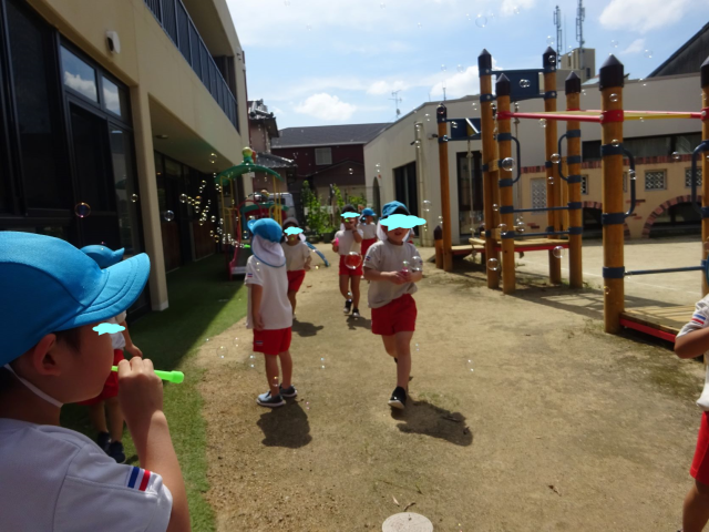 収穫あとのシャボン玉遊びも楽しそうでした✨