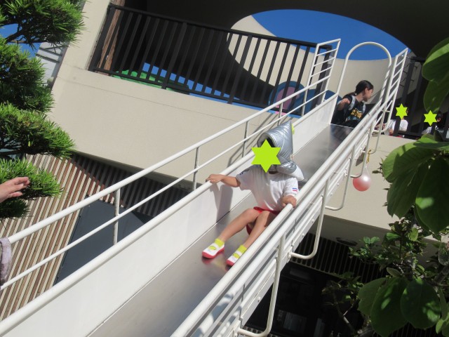 大きい組さんは自分でしっかり防災頭巾をかぶり、
