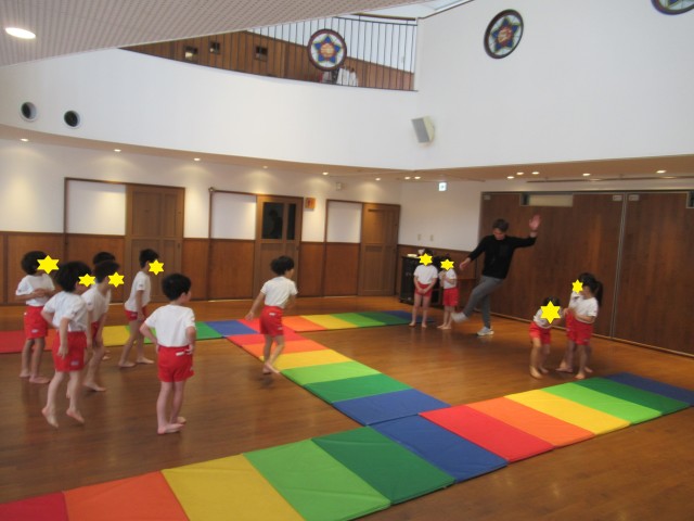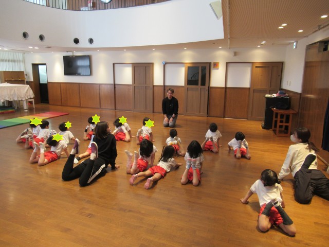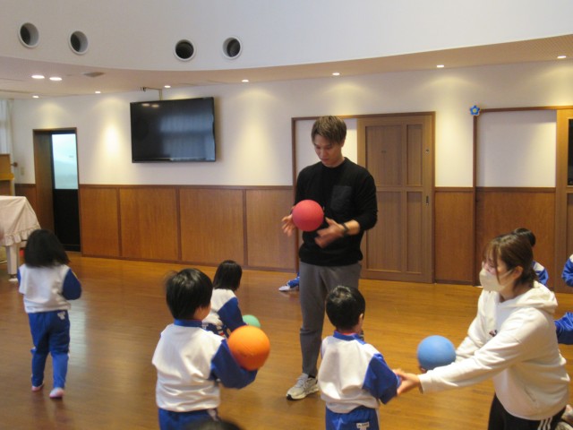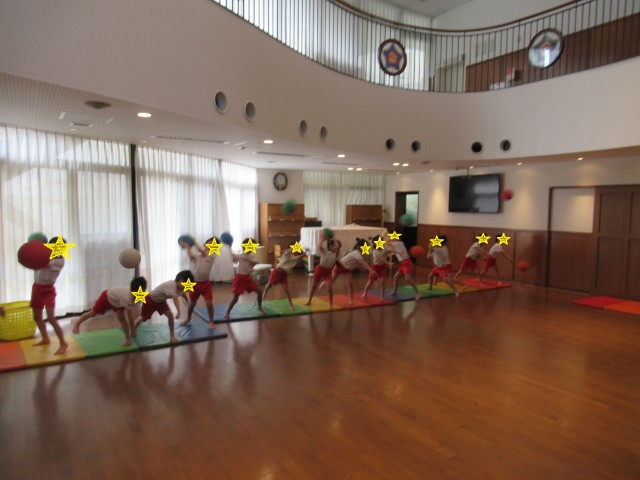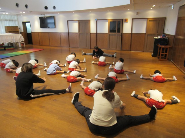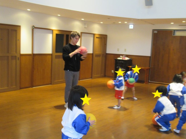 ウォーミングアップ後は、各クラスボールを使って元気よく参加していましたよ!!